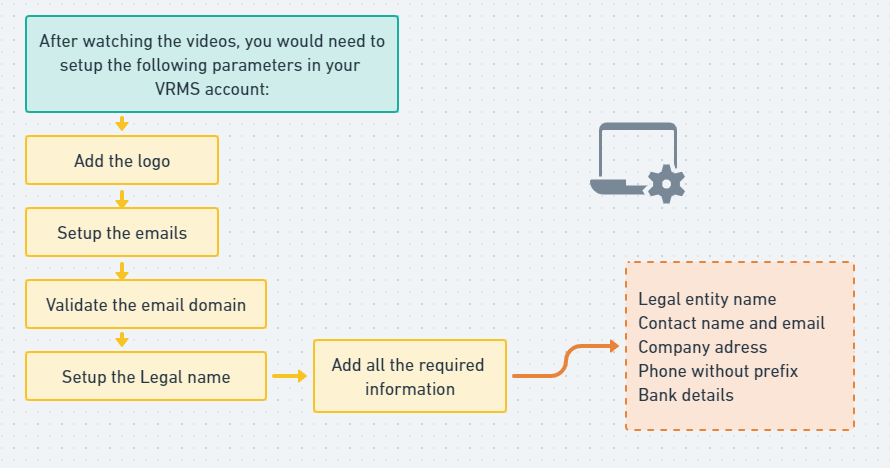 During the next few weeks you will have to configure your VRMS account. Before we begin, we will explain the process: