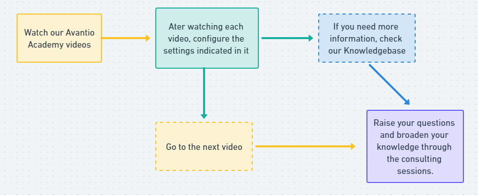 You will have to perform the configurations indicated in the tasks by following the Avantio Academy course. In addition, you will be supported by our documentation page.